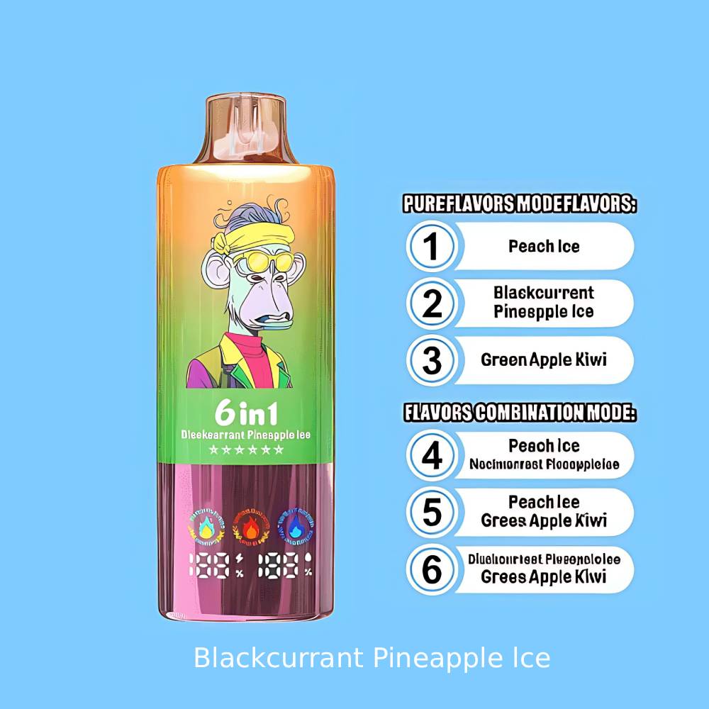 - Blackcurrant Pineapple Ice + Green Apple Kiwi – Bold tropical fruits with a tart green apple twist.