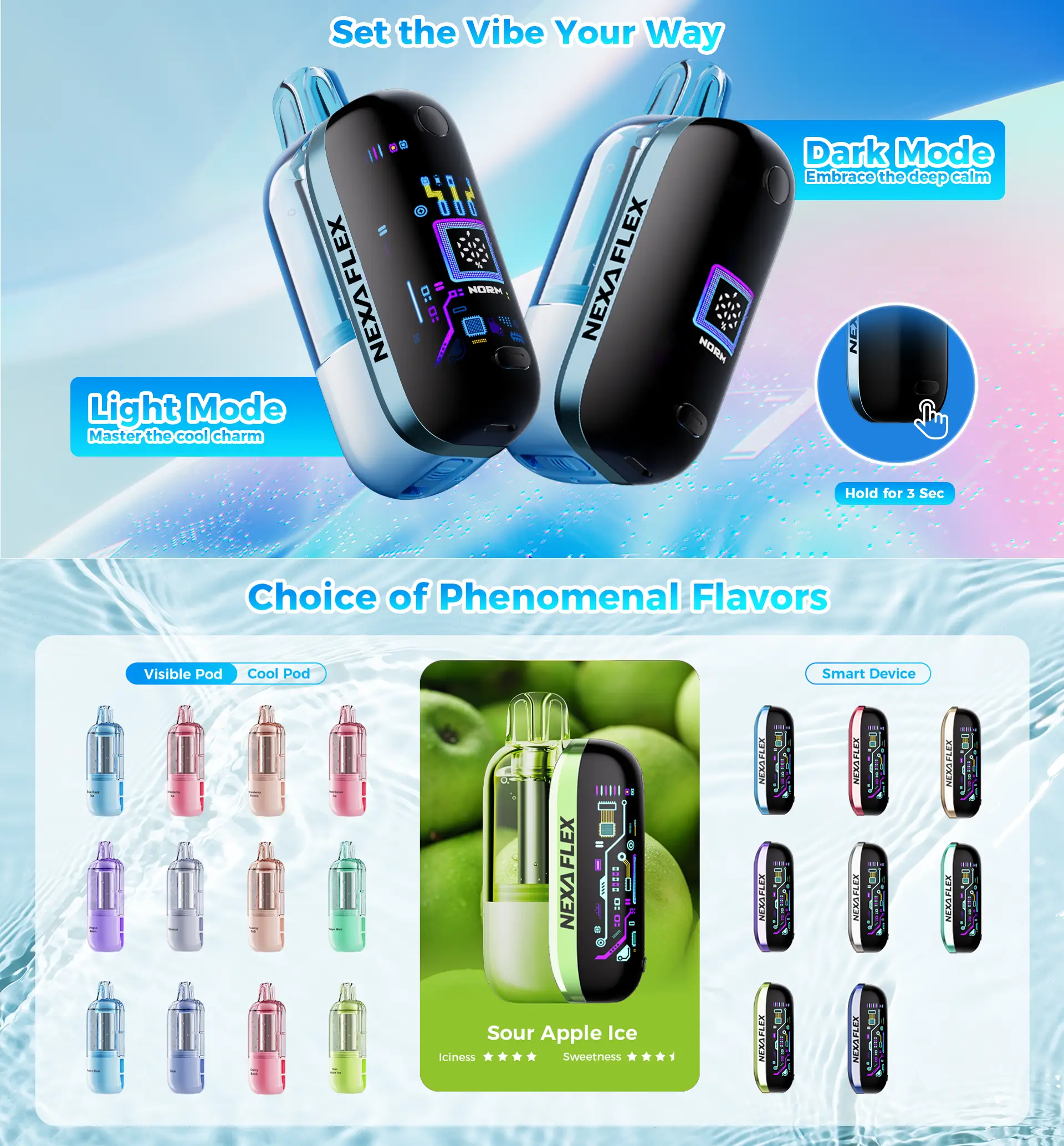 The Nexa Flex is the intelligent upgrade for a smarter, more satisfying vape. It delivers flexibility, flavor, and function in one sleek package.