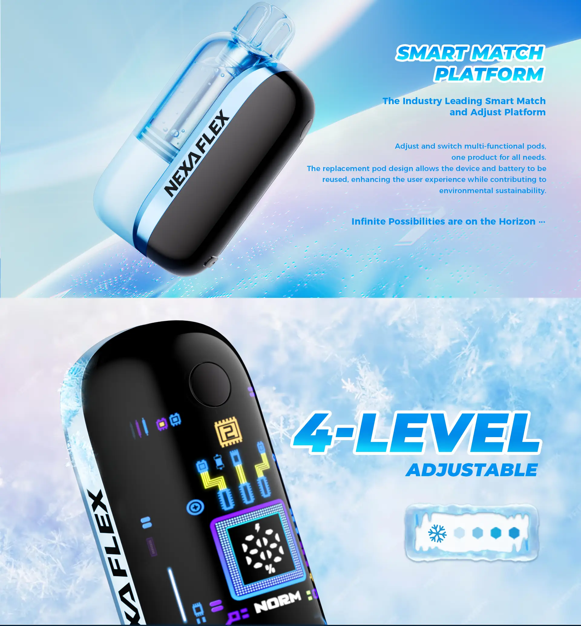 - Compatibility: NEXA Flex Smart Device – Reusable & Replaceable Pods